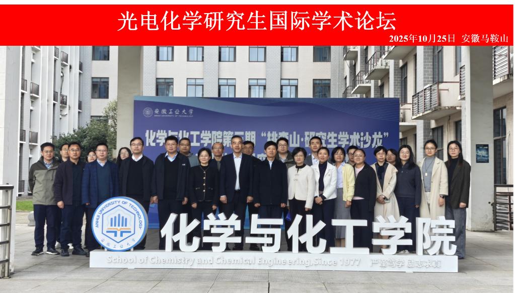 2025年10月25日,由安徽工业大学化学与化工学院主办的光电化学研究生国际学术论坛在秀山校区成功举行。本次论坛作为一场聚焦学科前沿、促进学术交流、深化研究生培养的重要活动,吸引了来自多所兄弟高校的专家学者及研究生的积极参与,现场学术氛围浓厚,成果丰硕。
