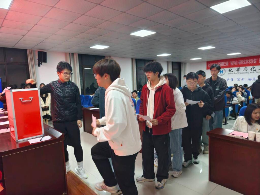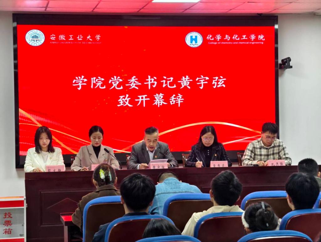 2025年11月3日晚,化学与化工学院第五次团员代表大会在秀山校区化工南楼207会议室召开。化学与化工学院党委书记黄宇弦、党委副书记冀秀芝、团委书记朱圣兰、团委副书记孔志强及全院团员代表参加,会议由朱圣兰主持。