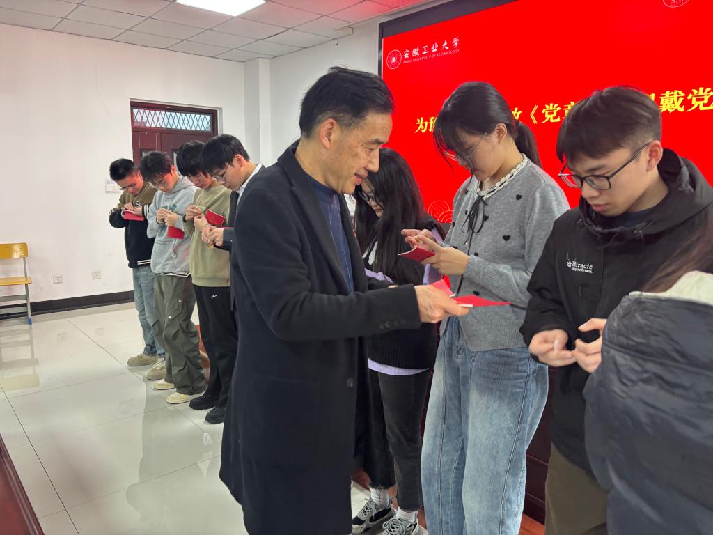 伴随着庄严的《国际歌》,入党宣誓仪式正式开始,学院分团委书记朱圣兰宣读了学院党委关于新发展党员的批复。与会党员在党员代表周业淳的带领下庄严宣誓,激昂的宣誓抒发了大家对党忠诚的决心。学院领导为每一位新发展党员佩戴了党员徽章,颁发了《中国共产党章程》。新党员代表杨春艳和老党员代表勒小慧分别发言,表达出作为一名学生党员,要时刻保持党员的先进性和先锋模范作用的决心和信心。