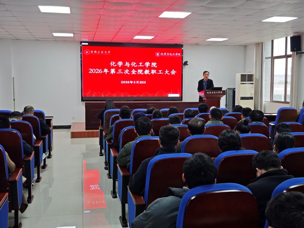 2026年3月23日下午,化学与化工学院在化工楼南207报告厅召开2026年第三次全院教职工大会,会议由院党委书记黄宇弦主持。