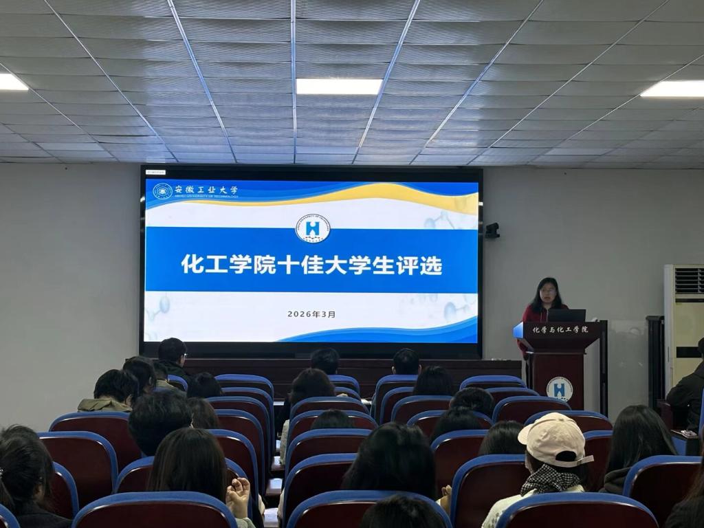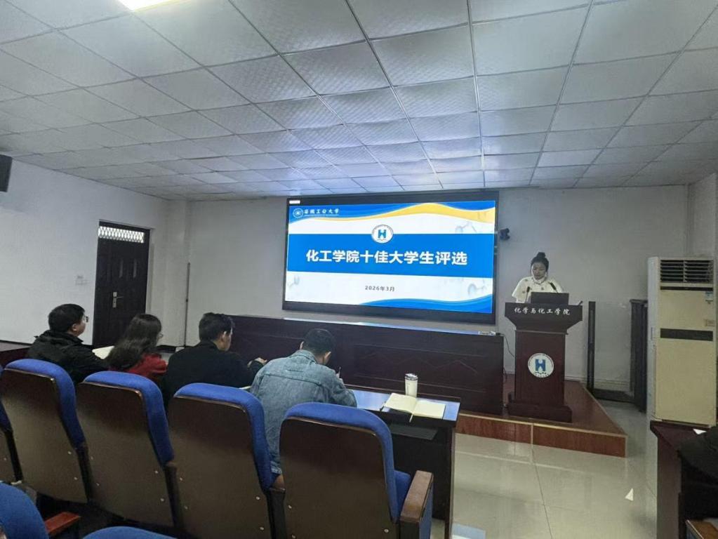 3月30日晚6点半,化学与化工学院在化工南楼207教室举办2026年“十佳大学生”评选。学院党委书记黄宇弦,党委副书记、纪委书记、副院长冀秀芝,学院团委书记及各年级辅导员出席,答辩由朱圣兰同学主持。